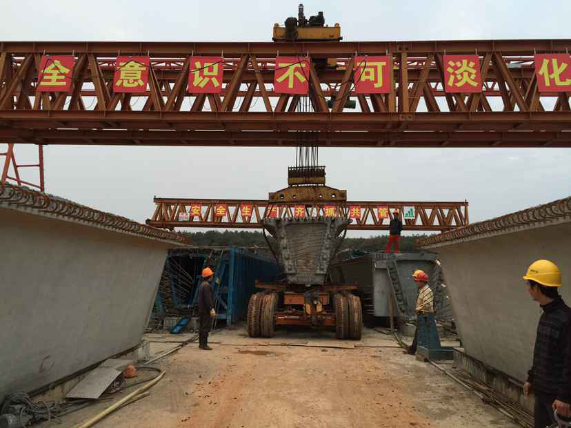 通过管理人员和施工队作业人员共同努力,首片预制梁的运送工作、架梁工作顺利完成,为早日完成桥梁施工任务乃至整个工程施工任务奠定了坚实基础。